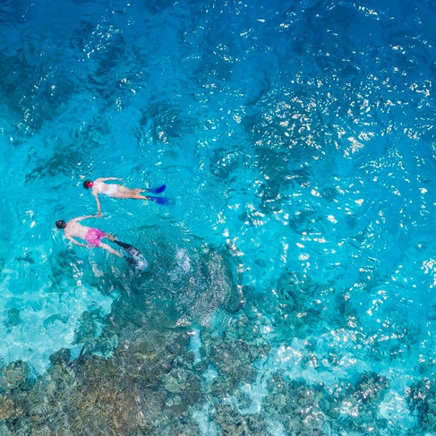 Located at a prime atoll entrance with channels on both sides, the resort is a diving and snorkelling paradise, with a house reef teeming with silver-tipped sharks, lobsters and giant sea turtles. Snorkelling right off the beach or pier allows you encounter incredible sea life almost immediately.